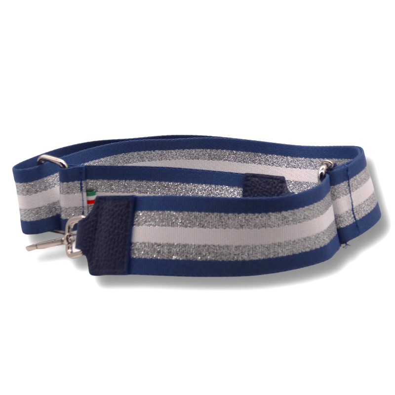 Tracolla in vera pelle e tessuto, con clip a moschettone, perfetta per rendere unica la tua Galma. Finiture argento.
