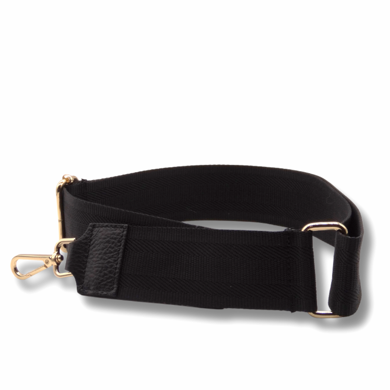 Tracolla in vera pelle e tessuto, con clip a moschettone, perfetta per rendere unica la tua Galma. Finiture oro.