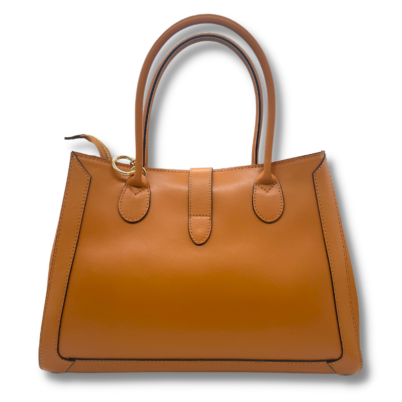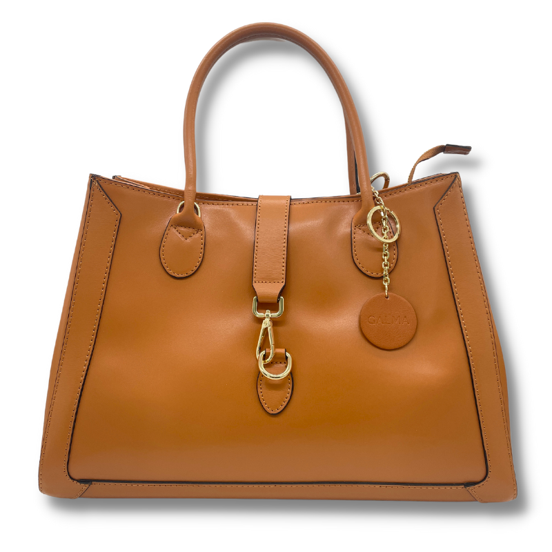 Borsa a mano in vera pelle saffiano di ampie dimensioni. Chiusura frontale con moschettone, chiusura superiore con cerniera. Internamente ha due tasche molto spaziose, suddivise da una terza tasca centrale con cernira. Ideale per organizzare al meglio le tue giornate.