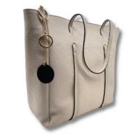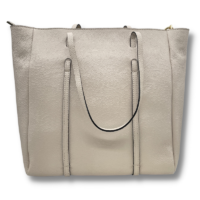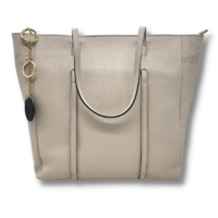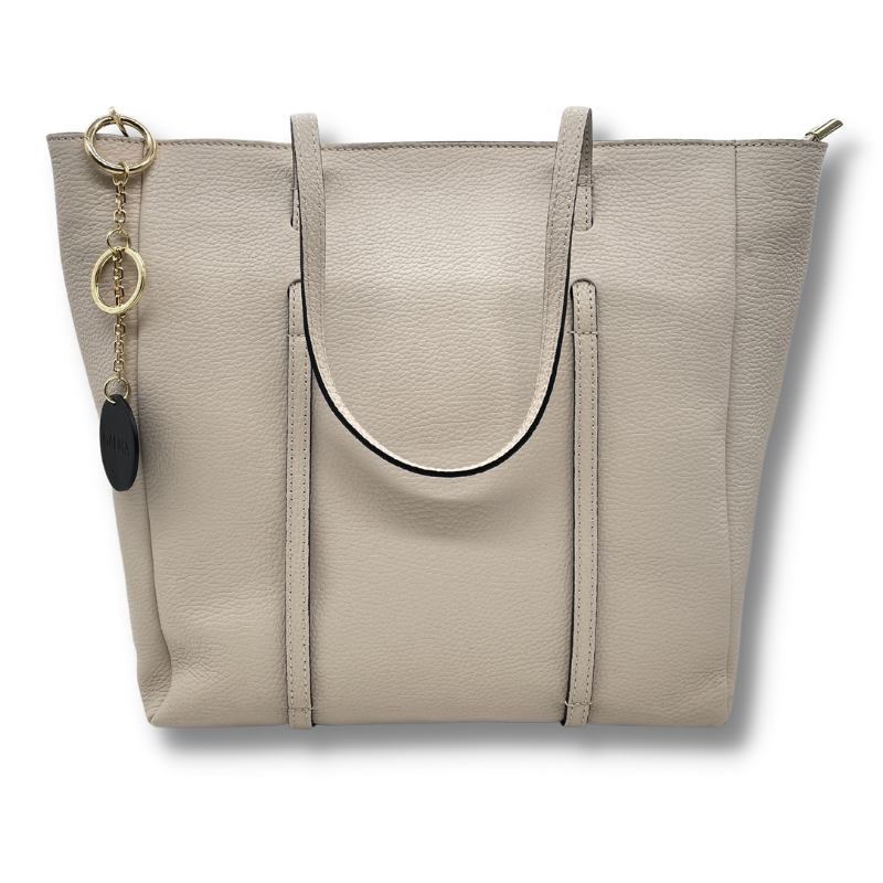 Grande shopping bag in morbida pelle dollaro, la più capiente nella collezione Galma. Interno foderato in tessuto con ampie tasche richiudibili con cerniera. Finiture color oro.