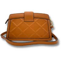 Borsa a tracolla o a spalla, vera pelle in rilievo. Meccanismo di chiusura con bottone scorrevole e cerniera. L’interno è rifinito in pelle di colore nero e suddiviso in due pratiche tasche. Finiture color oro.